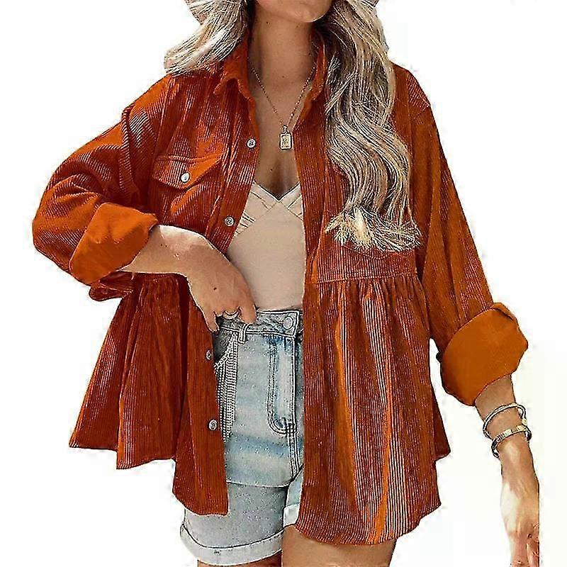New Women's Long Sleeved Corduroy Ruffle Edge Shirt Top Button Up Shirt For Women