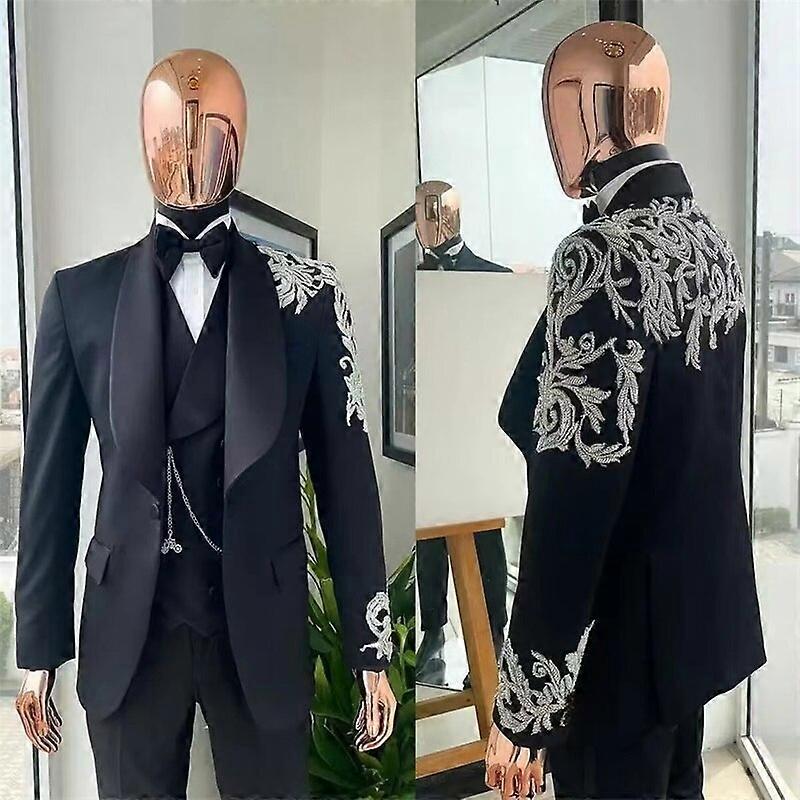 Luxury Appliques Men Suits 3 Pieces Wedding Tuxedo Formal Prom Party Office Wear