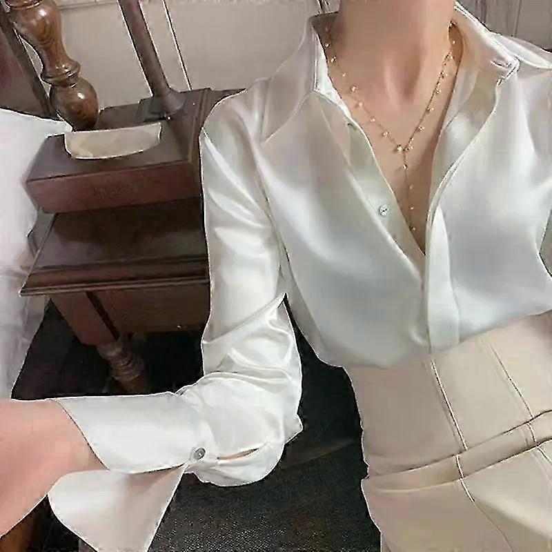 White Silk Satin Spring New Style Chic Long Sleeve Shirt Women's Professional Fashion Style Shirt Autumn