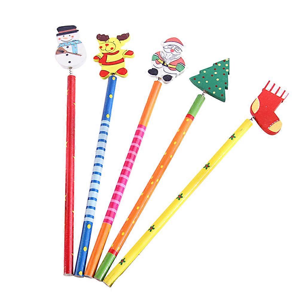 5pcs Writing Pen Wooden Pencil Christmas Tree Snowman Sock Bell Old Man Student Office Stationery