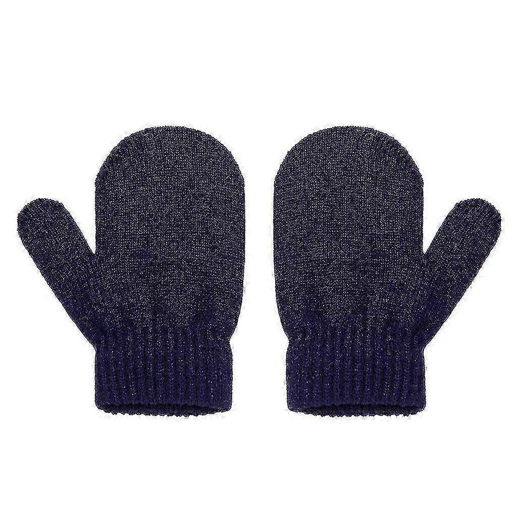 Double winter children's knitted gloves, solid color warm full-finger gloves for toddlers, suitable for boys and girls, navy blue.