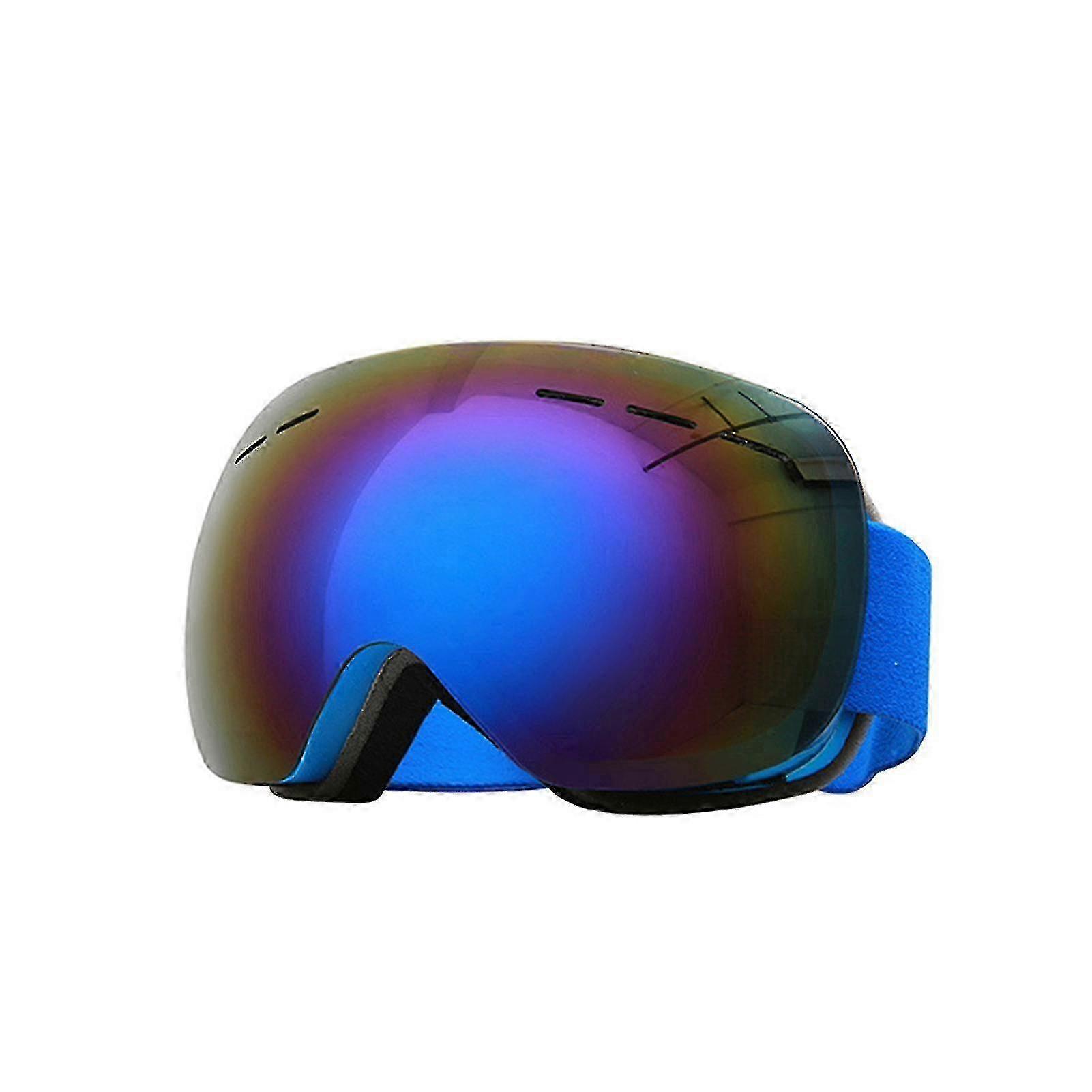 A set of ski goggles, double-layered for UV protection, adjustable straps, anti-fog for winter skiing, suitable for outdoor use.