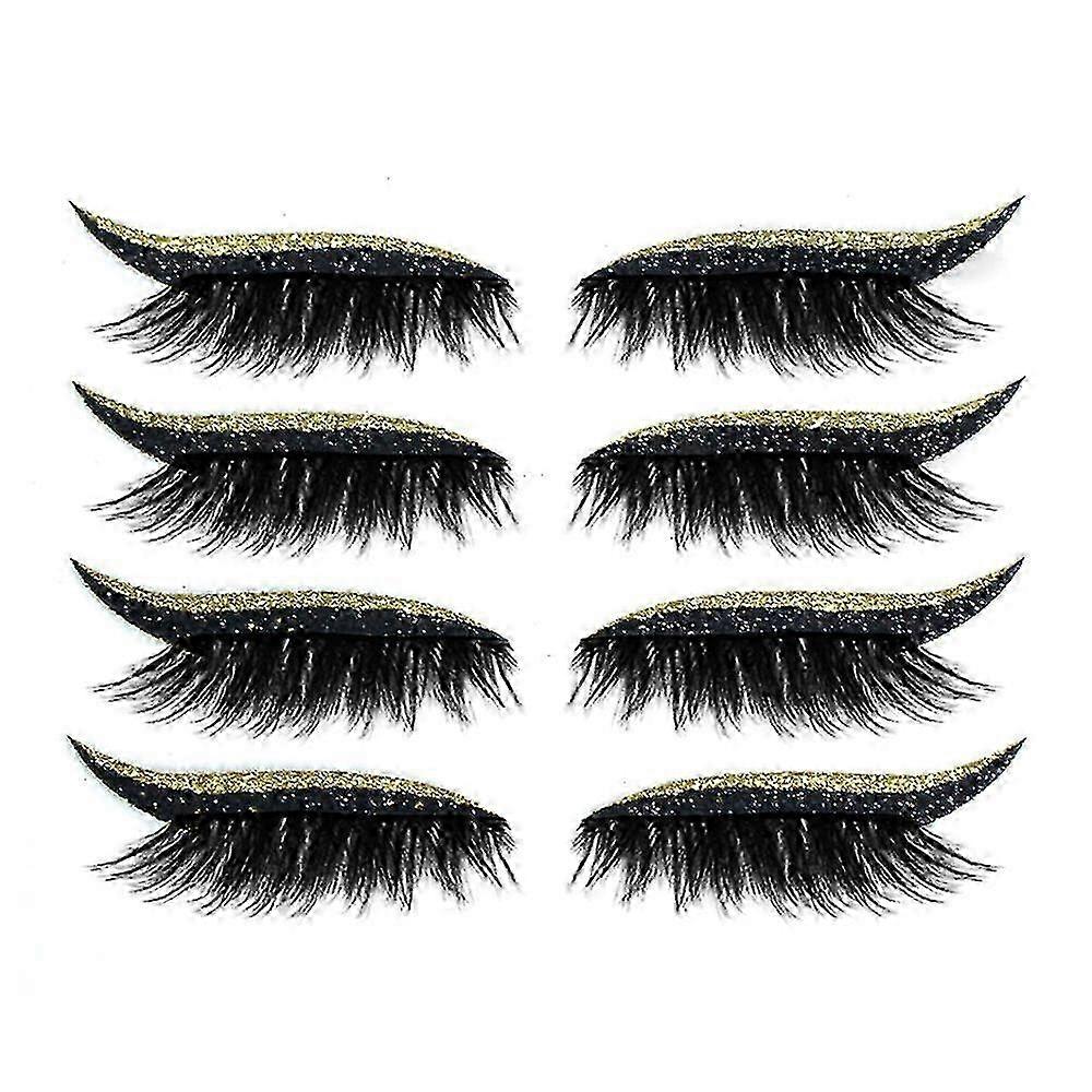 4 pairs of reusable eyeliner and false eyelash stickers, makeup glitter eyeshadow, 7 colors, Gold