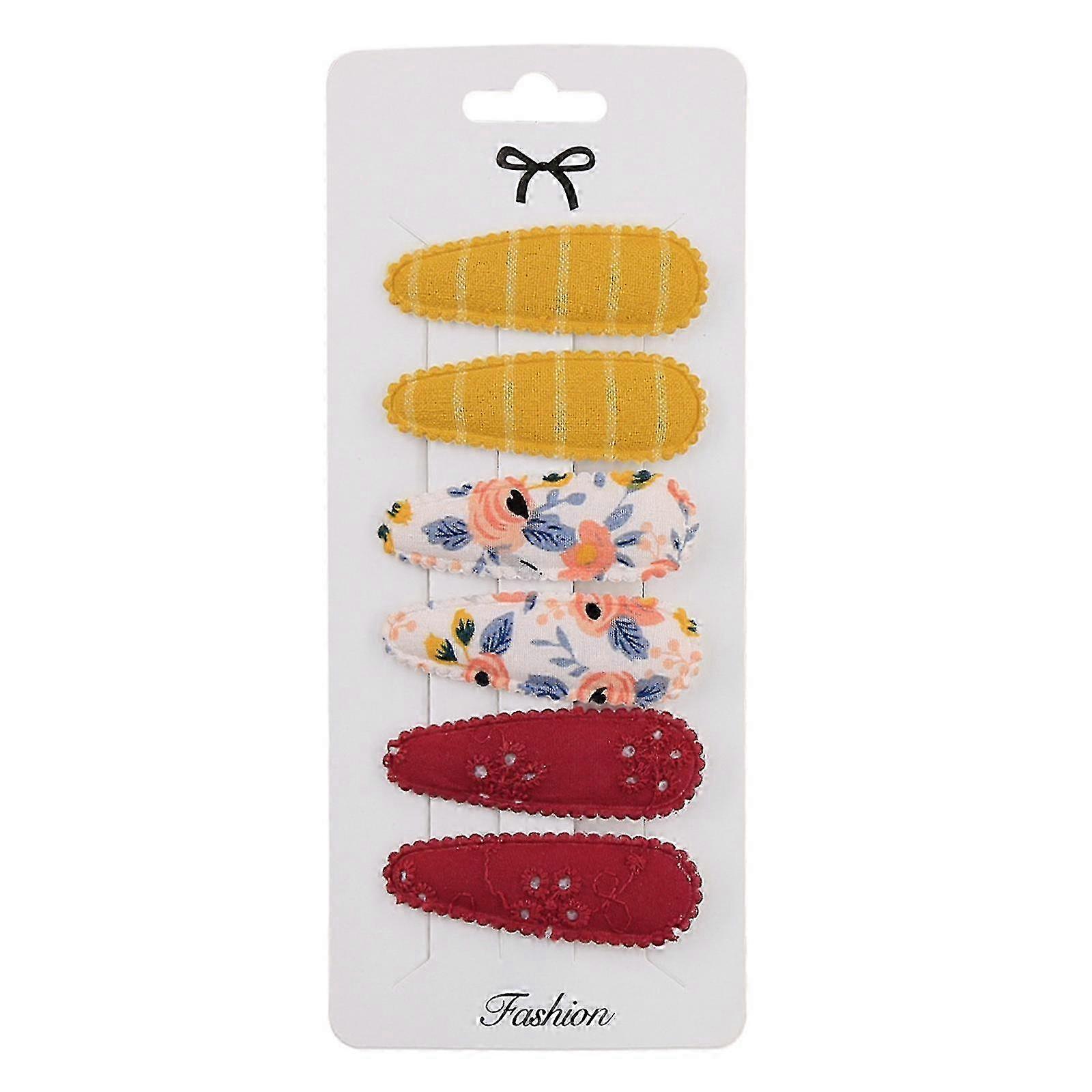 6-piece set of children's girl teardrop-shaped hair clips, sweet floral fabric metal snap hairpins, multi-color hair accessories for toddlers, 14