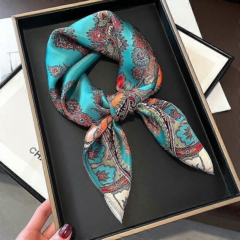 100% Silk Square Scarf Women Vintage Blue Paisley Kerchief Headscarf Tied 65cm