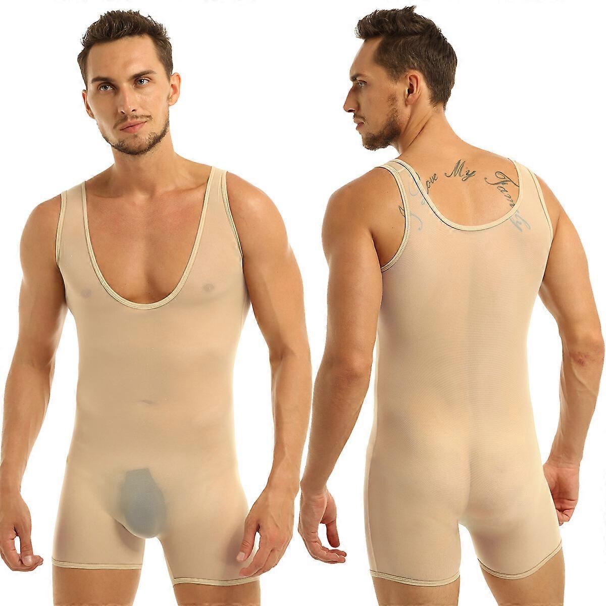 Mens Mesh Sheer Sleeveless Wrestling Singlet Leotard Bodysuit Lingerie Underwear