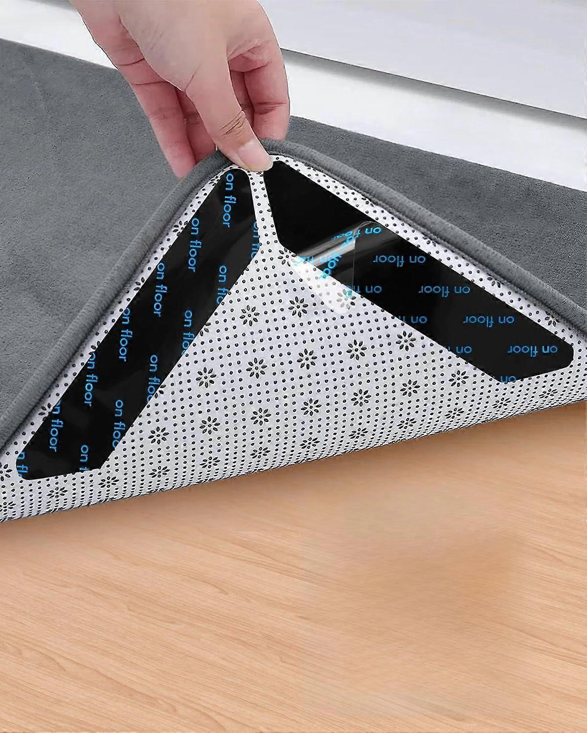 SAFE & SECURE: Effectively reduces carpet tripping hazards Robots and vacuum cleaners won't get stuck and can clean on mats Safe for navigating around the home, suitable for all rug types (indoor/outdoor). Keeps your floors accident-free while maintaining perfect rug alignment.3-STEP INSTALLATION:1) Peel backing 2) Stick to rug underside 3) Press to floor- your rug stays firmly anchored even under heavy movement. Achieve a polished look in minutes!UNIVERSAL FLOOR COMPATIBILITY:Safe for hardwood, tile, laminate, and concrete floors. Not recommended for shag rugs. Reinforced edges prevent folding, even under furniture weight.ECO-FRIENDLY REUSABILITY: Simply wash with mild soap and air-dry to restore 95%+ adhesion. Our premium material withstands 50+ reuse cycles - saving you money and reducing waste!DAMAGE-FREE REMOVAL TIP:Lift rug+grippers together, then apply warm water to weaken adhesion. Peels off cleanly without tearing carpet fibers.