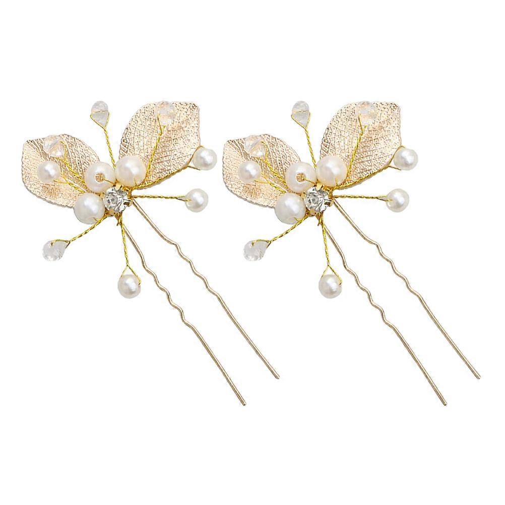 Elegant Children's Head Accessories for Wedding Use 2Pcs Golden Pearl Hairpins