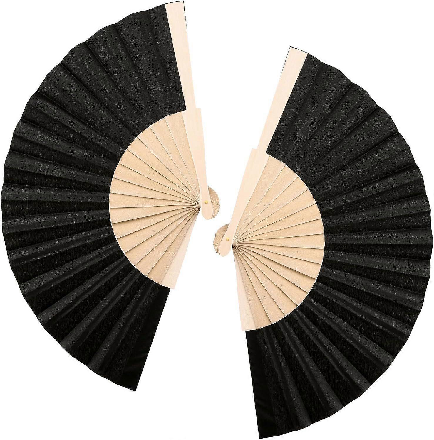 Alipis 2Pcs Wooden Handheld Folding Fans Fabric Chinese Style Decorative Fans for Weddings Costumes and Parties Portable Design