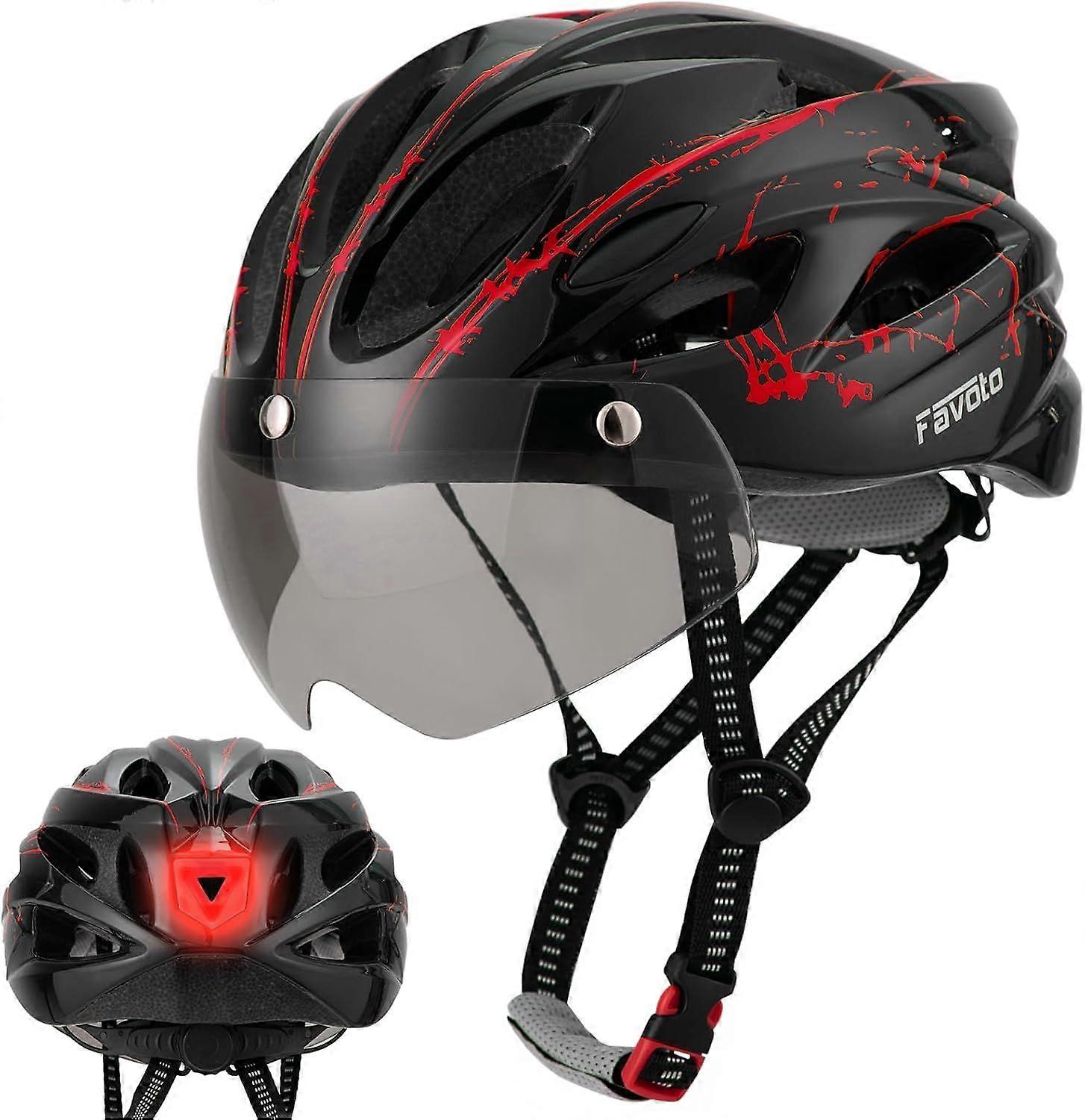 Favoto Bike Helmet Adult - Bicycle Helmet for Men Women Lightweight Cycling Helmets with Led Light Detachable Magnetic Goggles, Breathable Road Bike M