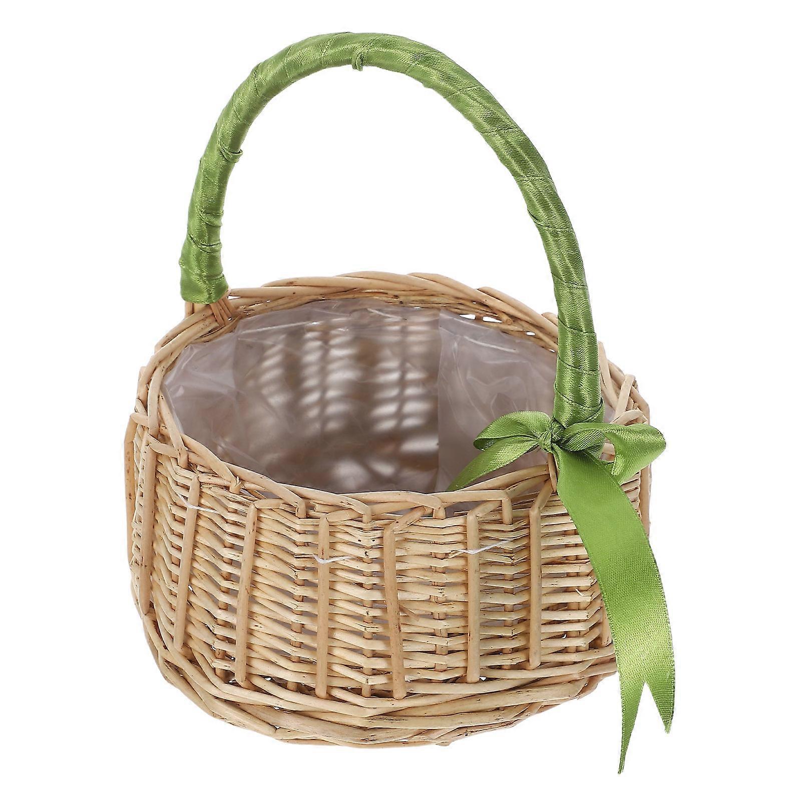 Wedding Flower Girl Basket for Decoration Handwoven Willow with Ribbon Handle