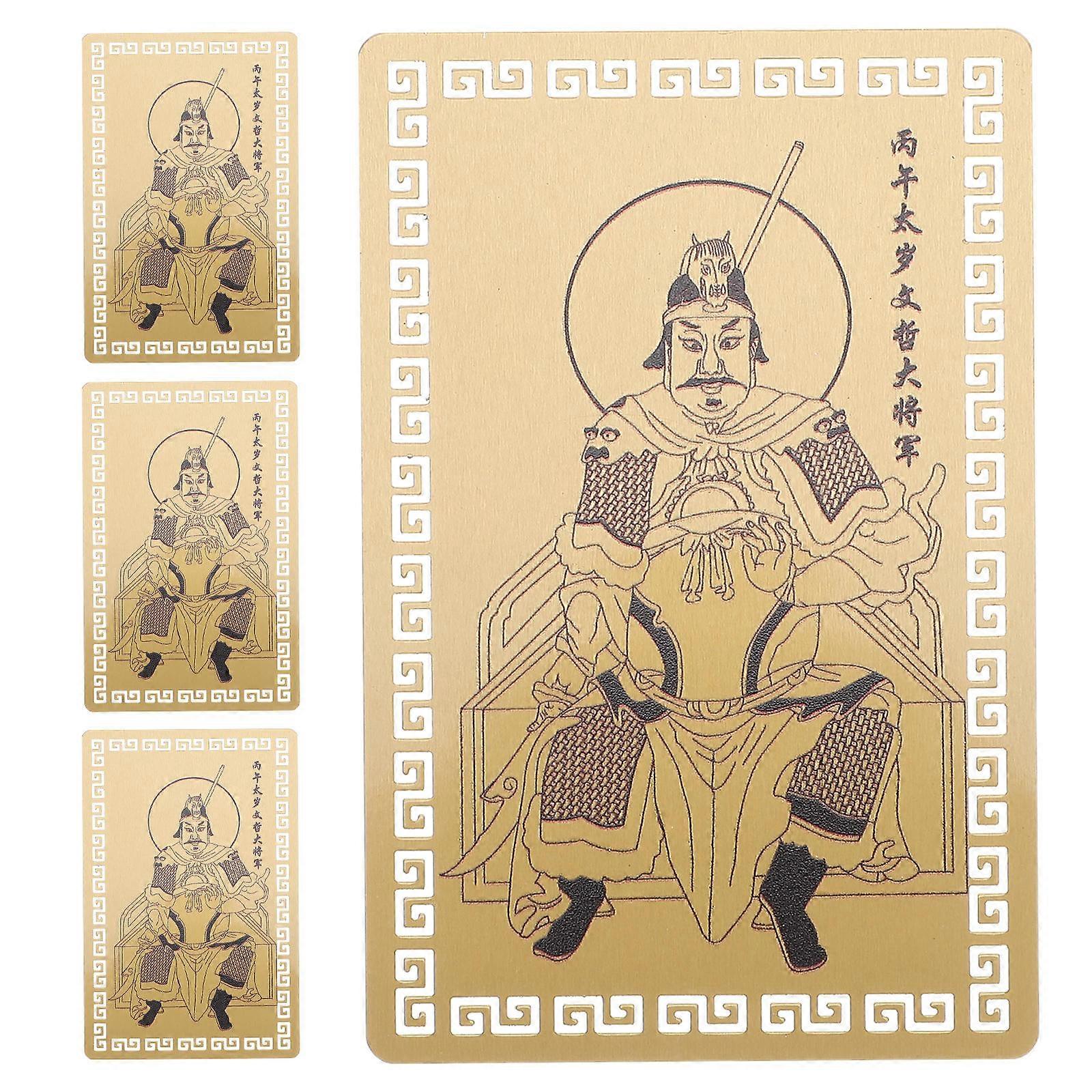 Crafted with attention to detail, this card showcases the revered Tai Sui deity, symbolizing protection and harmony. Ideal for those and prosperity, it serves as a meaningful amulet. Its elegant design makes it a thoughtful present for celebrating the Lunar New Year or other special occasions. Features - Color: Multi -Material:Aluminum-magnesium alloy - Size: 8.60X5.40X0.20cm/3.38X2.12X0.08in -Zodiac year protection: tailored for the year of the horse, this card serves as a symbolic shield, enhancing luck and safeguarding against potential misfortunes -Elegant design: the intricate craftsmanship makes it a standout piece, Ideal for gifting or displaying as a token of cultural heritage and personal protection -Convenient usage: designed for easy portability, it can be kept in wallets, bags, or displayed at home, ensuring its protective energy is always accessible -Longterm value: made with materials, this card resists wear and tear, preserving its aesthetic and spiritual significance over time -Positive energy boost: provides reassurance and a sense of calm, helping users navigate challenges with confidence and optimism during their zodiac year Package list: 4 x Tai Sui Card