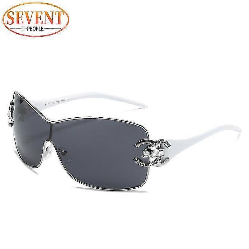 Oversized One Piece Women New Fashion Diamond Sun Glasses For Female Streetwear Y2k Sunglass Big Frame Shades Uv400