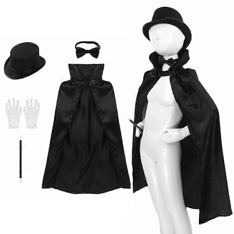5Pcs Kids Magician Role Play Costume Outfit Cape Hat Magic Wand Gloves Necktie