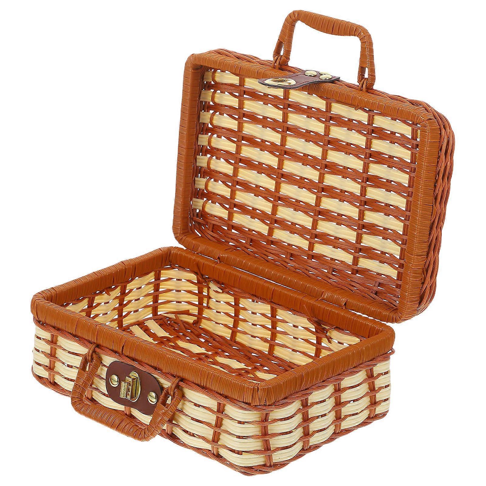 Vintage Simulated Rattan Suitcase with Handles for Home Multi PP Material Large Capacity Lightweight Easy to Carry 12.5 x 7.5 x 5 inches