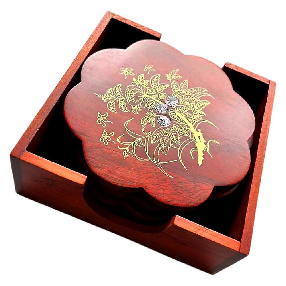 Red Wood Coasters Set for Heat Insulation with Holder 1Set Vintage Wooden Pot Pad