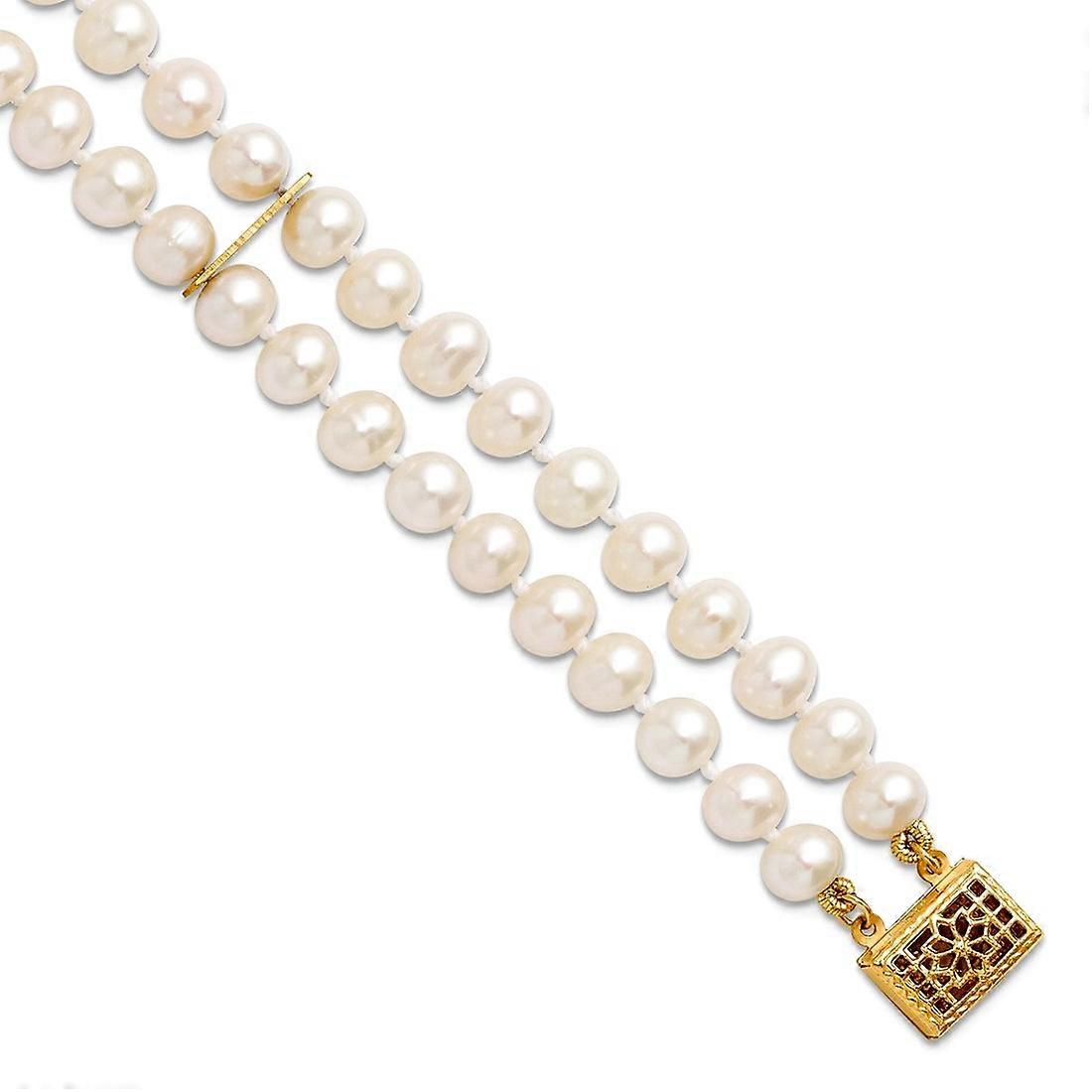 1/20 14k Gold Filled 5-6mm Near Round White Freshwater Cultured Pearl 2-strand Bracelet 7.5 Inch Strand Bracelet for Wom