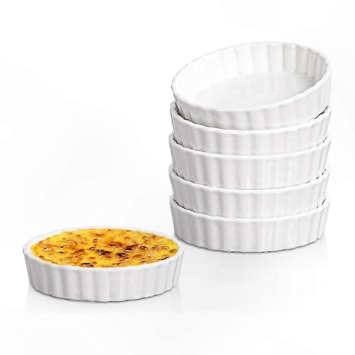 5 oz Porcelain Ramekins for Creme Brulee, Round Fluted Quiche Dishes for Tarts