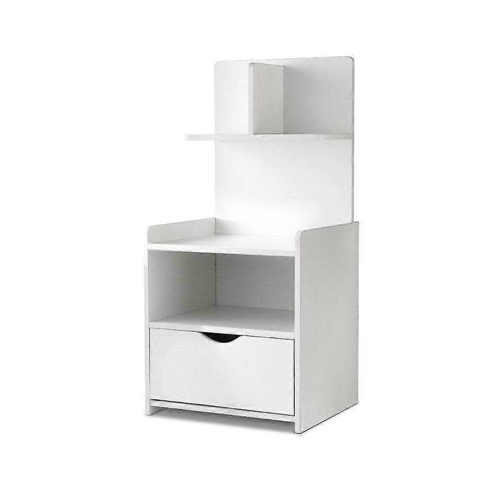 Vertical Space. Horizontal Space. Opened And Closed Storage. Our Charming Artiss Bedside Drawer With Shelf Offers A Unique Ensemble That Gives You More Practicality Greater Durability And Exceptional Style. The Smart-Looking Drawer Is Crafted With 12Mm Thick Particle Board With A Smooth Melamine Finish For Easy Maintenance And Cleaning As Well As Longlasting Use. Use The 4-Tier Shelf For All Your Favourite Displays And The Opened And Closed Storage Space For More Bedside And Personal Essentials. The Corners Are Rounded And Safe While The Air Gap Handle And Raised Height Add Touches Of Elegance And Character That Make This Piece Stand Out From The Mundane.