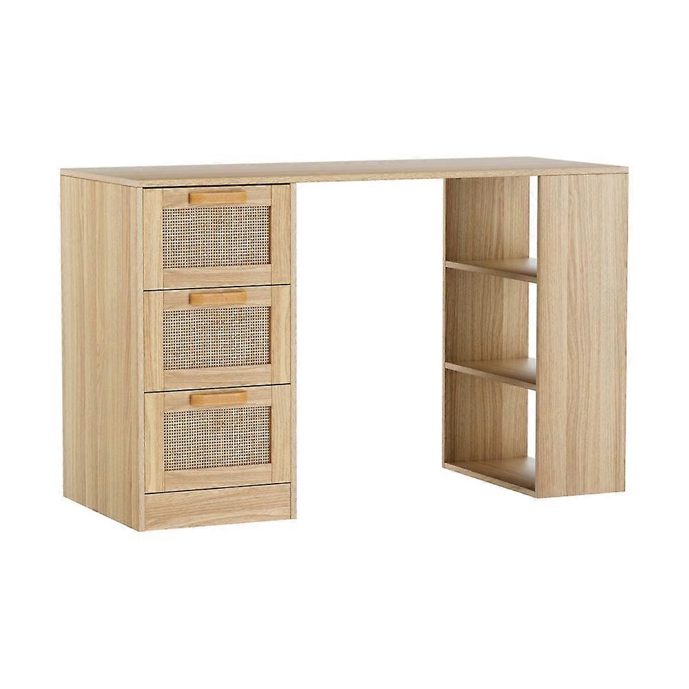 Artiss Computer Desk Drawer Shelf Home Office Study Table Rattan Oak 120Cm Home Office Desks