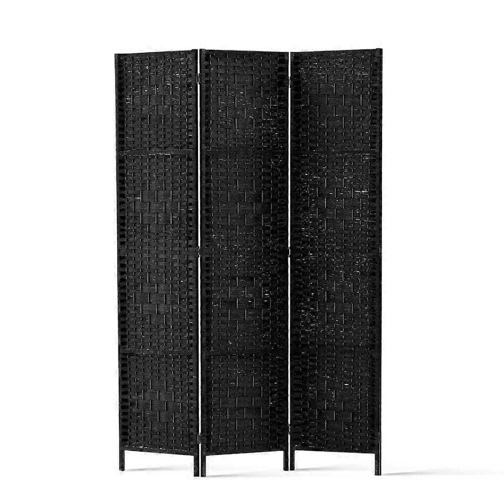 Artiss 3 Panel Room Divider Screen 123X170cm Woven Black Screens & Room Dividers