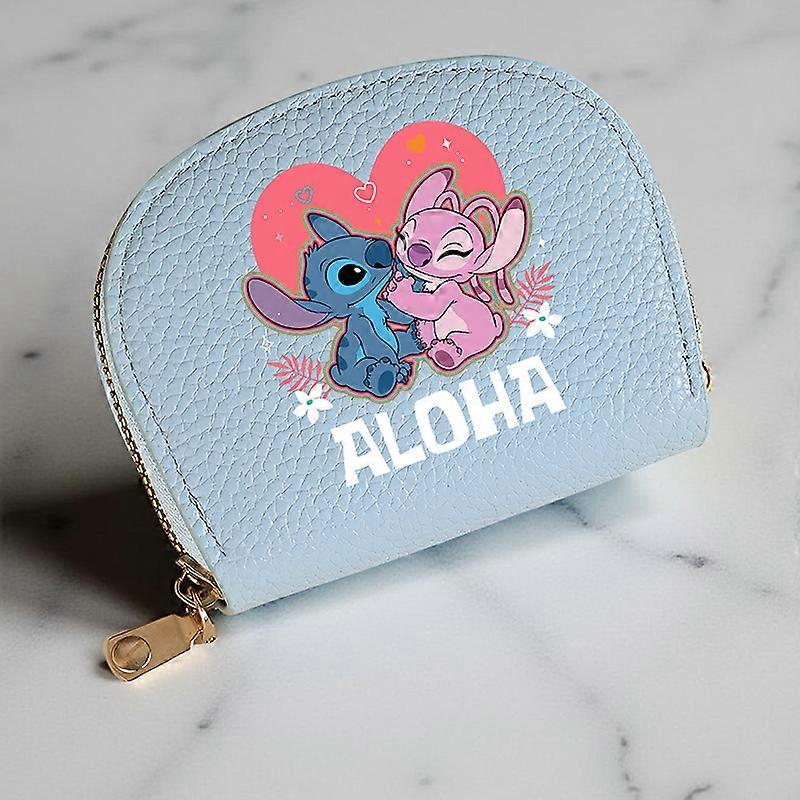 1pc Stitch Shell-Shaped Zip Wallet with 8 Card Slots - Stitch Cartoon Pattern PU Leather Slim Card Holder for Girls, Cute Gift