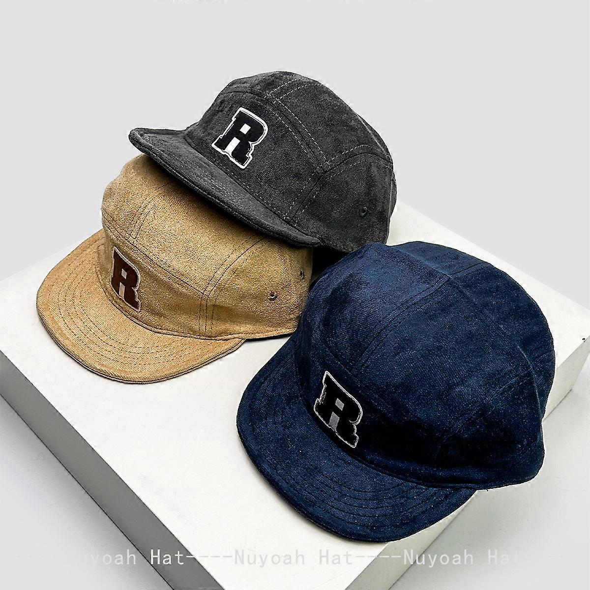 New Men Women Korean Patch R Letter Baseball Hats Sunshade Flat Eave Versatile Suede Peaked Caps Niche Fashion Retro Simple ins