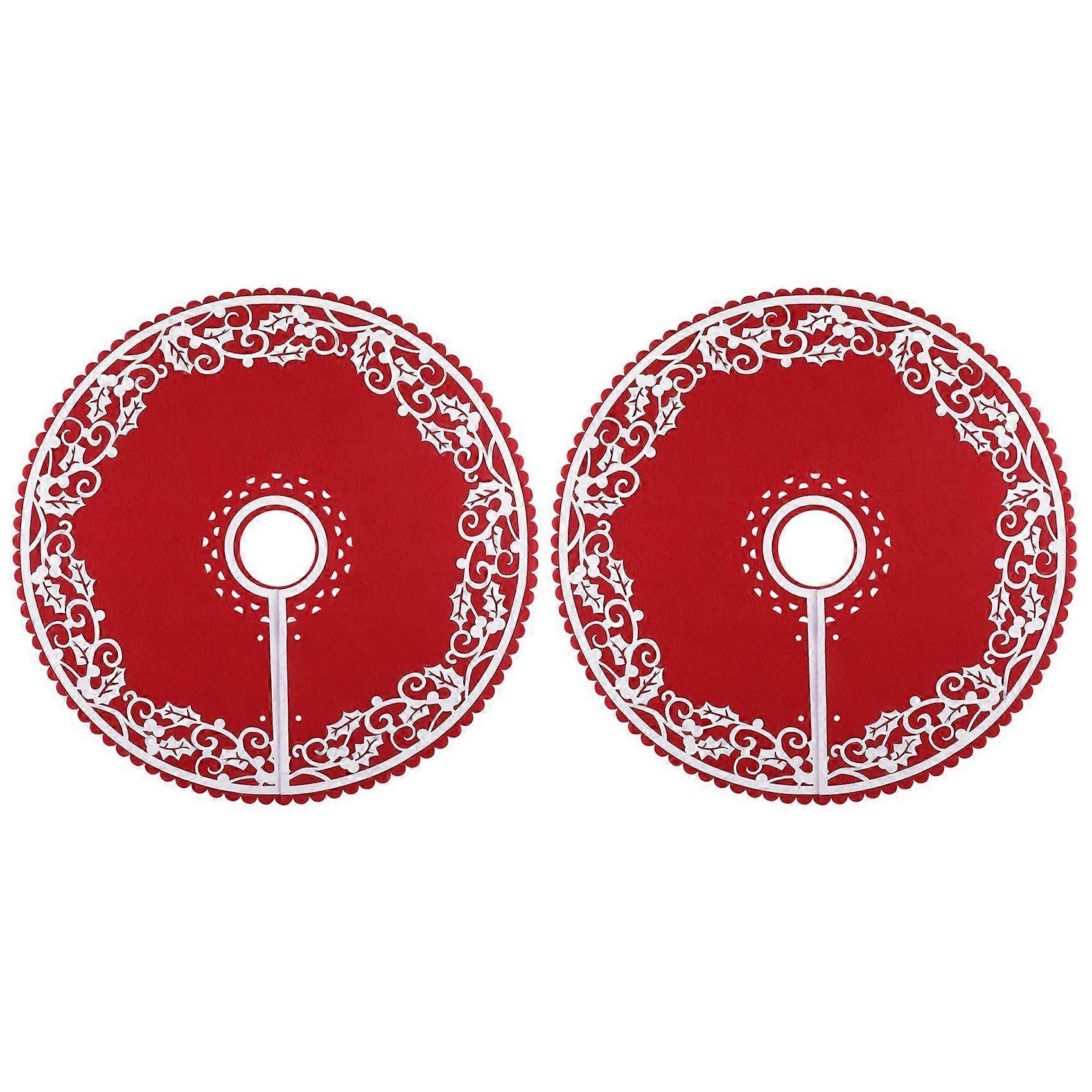 2 Pcs Christmas Tree Skirt - 12 Inches Mini Tree Skirt with Floral Border Pattern for New Year Party Xmas Decoration
