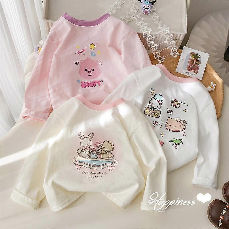Girly Heart Kawaii MINISO Hello Kitty Long Sleeve Shirt Spring Autumn Cute Fashionable Printing Undershirt Hoodie Gifts for Kids