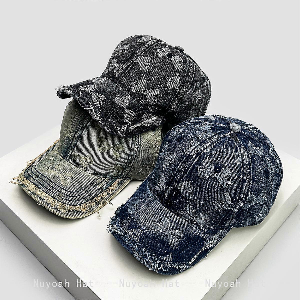 New Women Retro Jacquard Bow Distress Baseball Hats Sunshade Personal Versatile Broken Style Peaked Caps Fashion Outdoor Casual