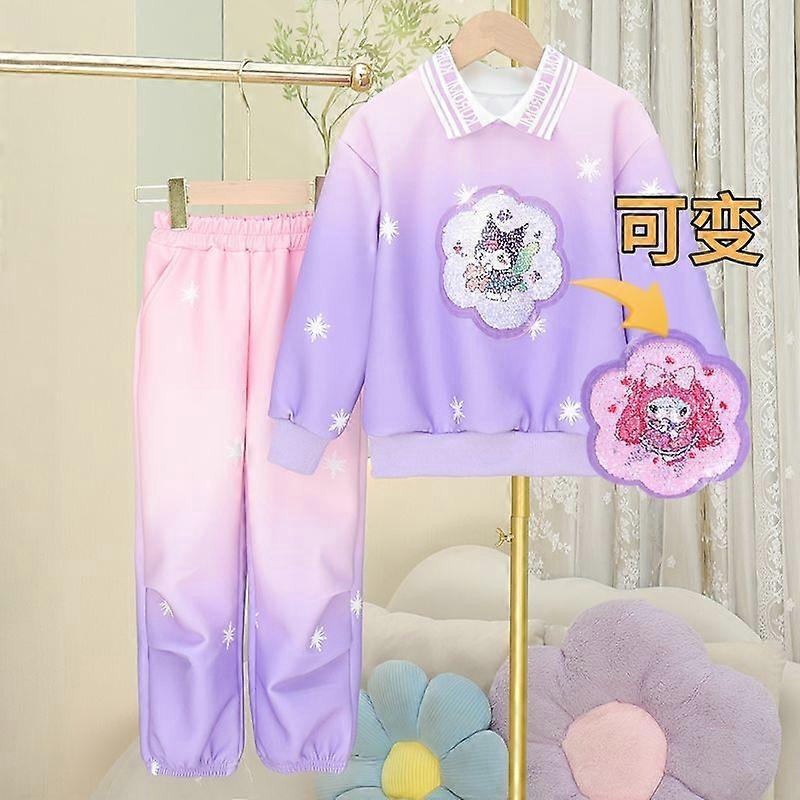2025 My Melody Kuromi Anime Kawaii MINISO Ins Fashion Long Sleeve Shirt Pants Cute Sports Hoodie Children Clothes Gifts for Kids