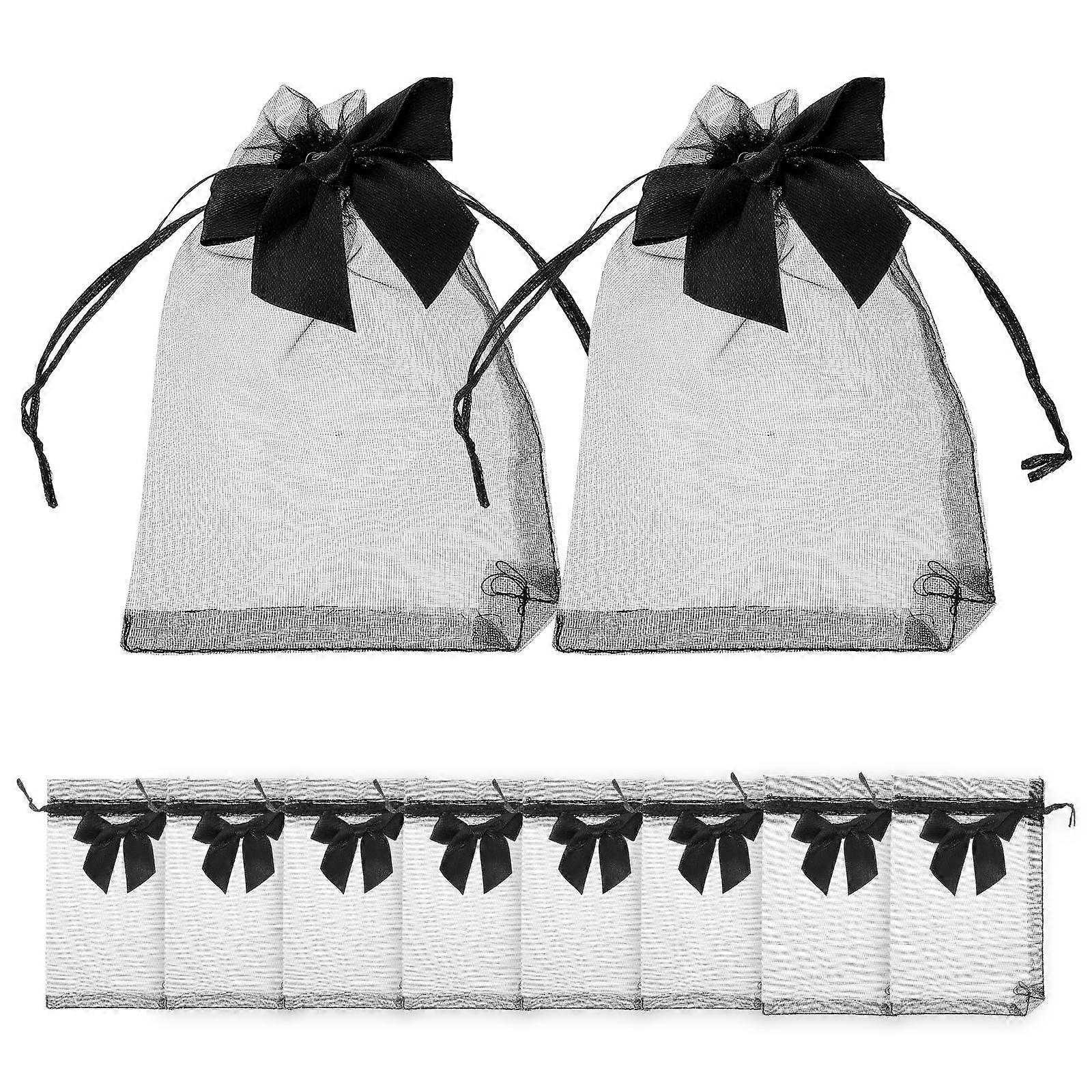 Black Bowknot Organza Drawstring Bags for Storage 10Pcs Gift Bags