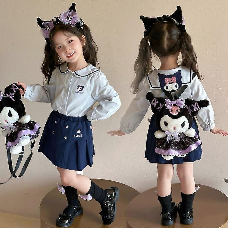 Girly Heart Kawaii Sanrio Anime Kuromi Long Sleeve Shirt Dress Set 2025 Cute Cartoon Children Two-piece Set Clothes Gifts