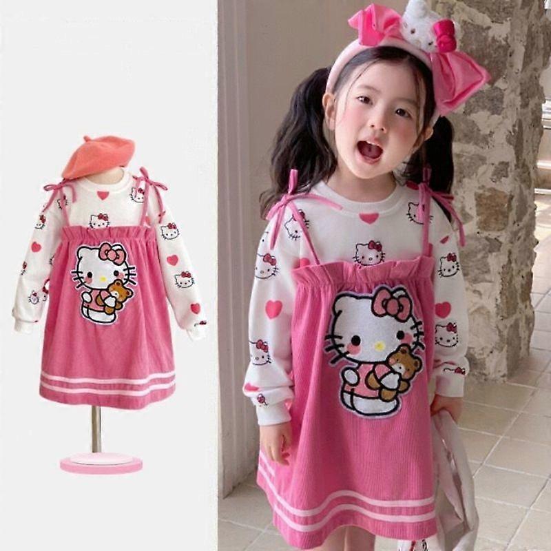2025 Kawaii MINISO Ins Hello Kitty Anime Long Sleeve Shirt Clothing Cute Children Autumn Winter Dress Hooeded Gifts for Kids