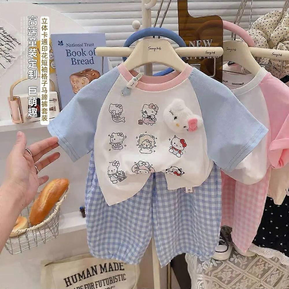 Girly Heart Hello Kitty Anime Kawaii Sanrio Ins Fashion Short-sleeved Shirt Pants Set 2025 Cute Children Two-piece Clothes Gifts