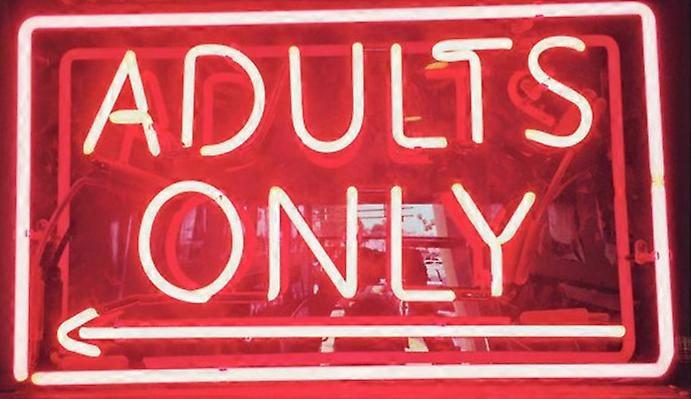 "Adults Only - This Way" Arrow Neon Sign - 24"x20" Handmade Real Glass Tube Art, Vintage Retro Directional Light for Bar, Lounge & Private Space