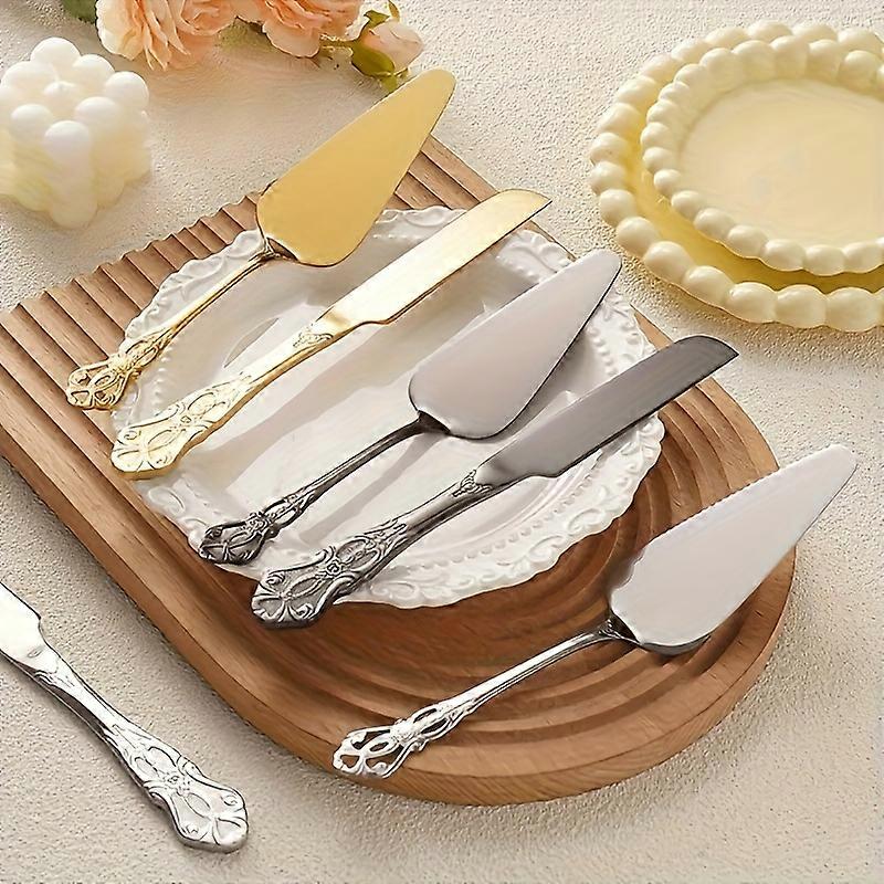 2pcs Vintage Palace Stainless Steel Bread Knife and Cake Spatula Set, Carved Hollow Design Elegant Cake Server for Parties