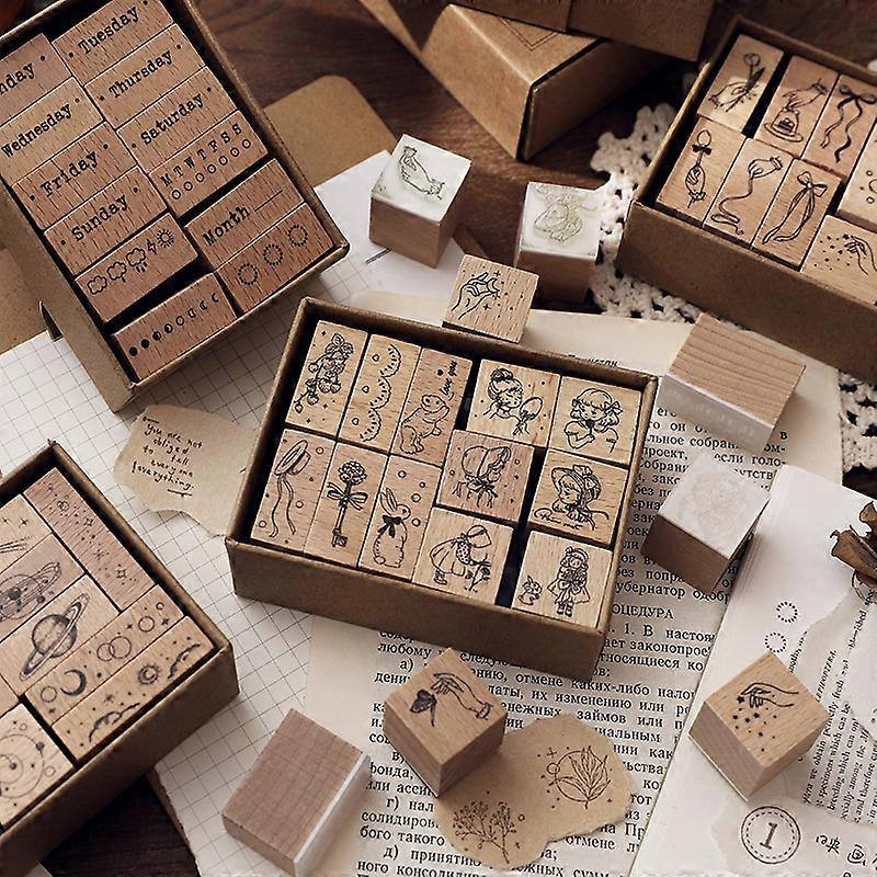 New 12PCS Vintage Wooden Stamps Wooden Stamp Scrapbook Scrapbook Assorted Stamps Diary Decoration Journal Kawaii Stamps