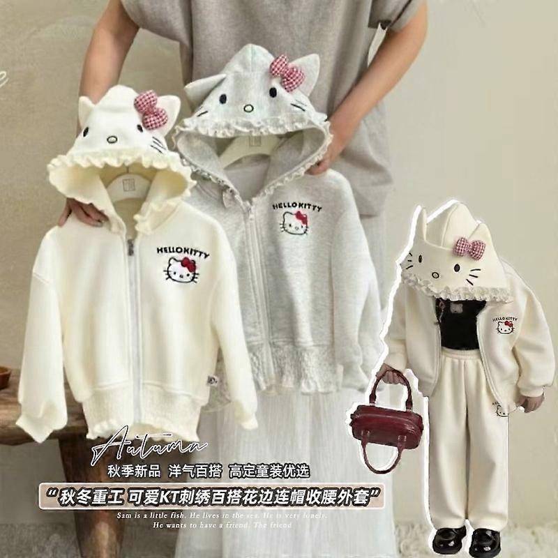 Kawaii Hello Kitty Sanrio Student Cute Cartoon Hooded Sportswear Children Comfortable Warm Hoodie Trousers Jacket Gift for Kids