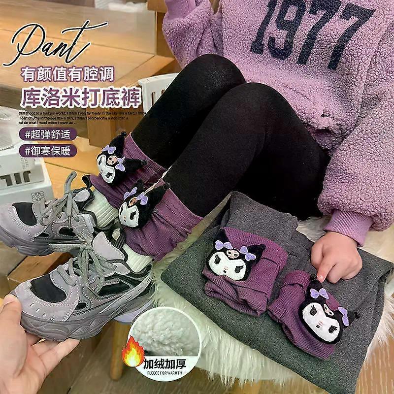 Kawaii Anime MINISO Kuromi Ins Casual Pants Autumn Winter Cute Cartoon Lovely Doll Thick Warm Casual Pants Gifts Toys for Kids