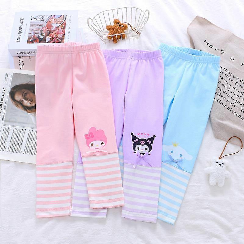 Cinnamoroll My Melody Anime Kawaii MINISO Children Casual Pants 2025 Spring Kuromi Striped Printed Pants Gifts for Kids