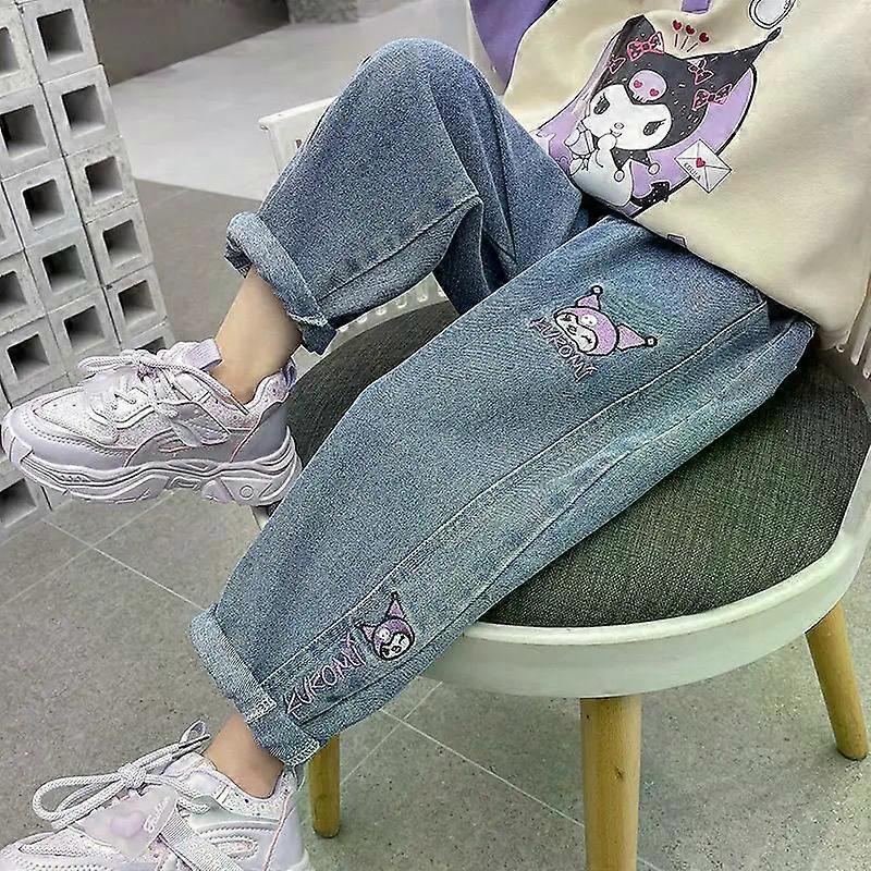 Girly Heart Kawaii Sanrio Anime Kuromi Jeans Pants Spring Summer New Cute Cartoon Children Baby Clothing Gifts for Kids