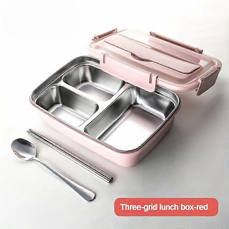 Leak-Proof Stainless Steel Lunch Box With 3 Compartments - Durable, Easy-Clean Bento Container For Students & Office Workers