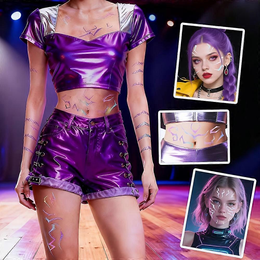 Large Kpop Purple Makeup Tattoo Stickers - Demon Body Art with Laser Lightning Effects, Highquality Stickers, Body Art Stickers
