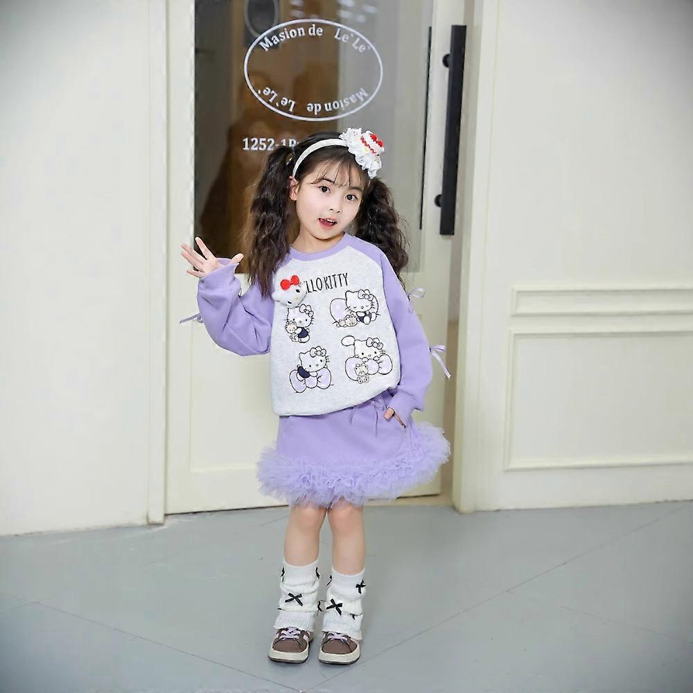 2025 Spring Autumn Anime Kawaii MINISO Hello Kitty Long Sleeve Shirt Skirt Set Cute Children Dress Two-piece Set Gifts for Girls