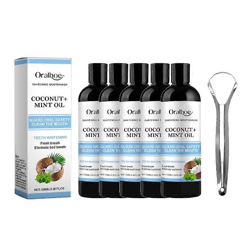 1-5x Coconut Mint Oil Mouthwash Fresh Breath, Teeth Whitening, Gum Health Stain Removal | Antioxidant Anti-Aging Oral Care for Sensitive Teeth