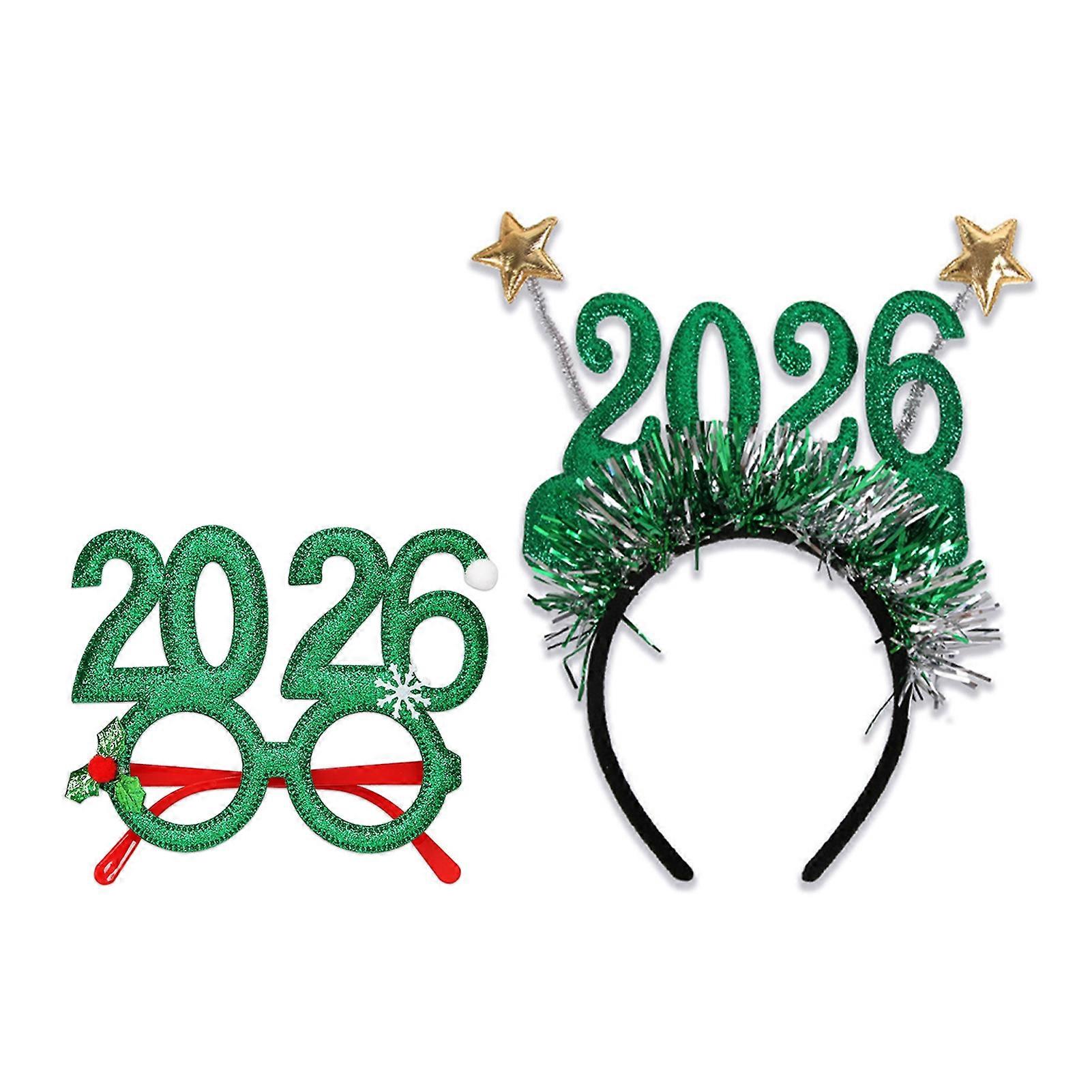 New Year Eve Party Supplies 2026 Glitter Tinsel Headband And Glasses Set for Happy New Year Party