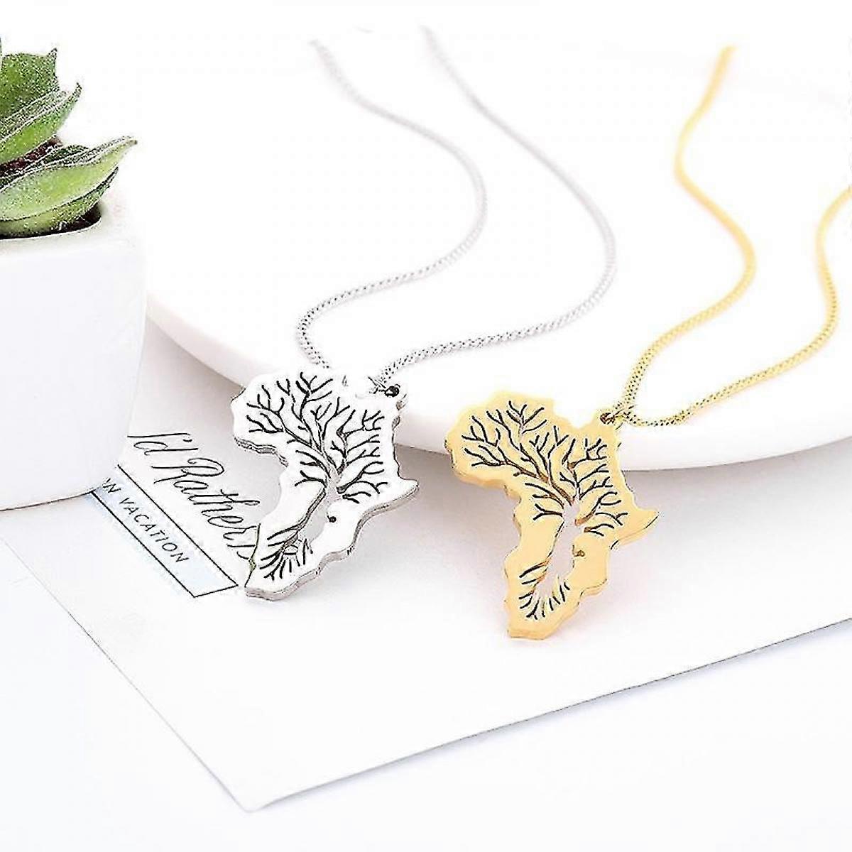 Halsband karta av Afrika och tree of life guld silver