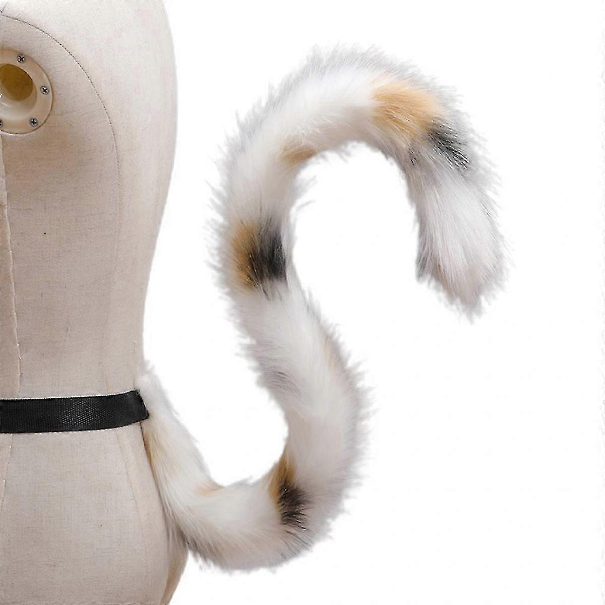 Handmade Faux Fur Plush Long Animal Tail Triple Color Flower Kitten Cosplay Prop brown camel white