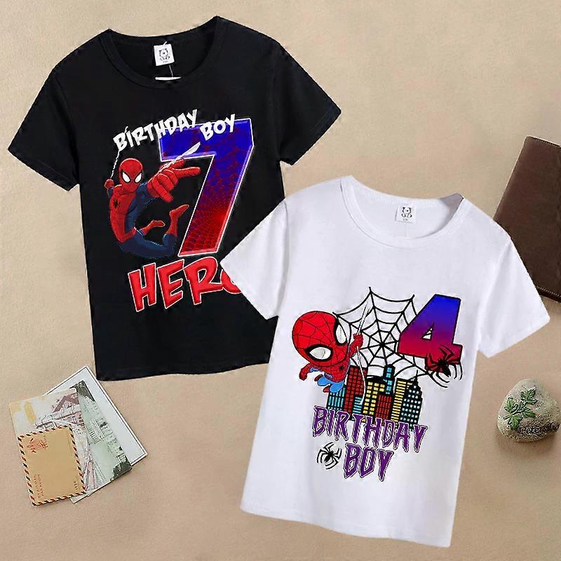 New Spiderman Kids T-shirts Cartoon Birthday Number 1-9 Printed Tops Baby Boys Casual Short Sleeves T-shirt Children Clothing